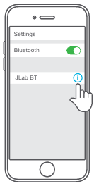- Если вы по-прежнему не видите JLab BT, повторите действия, описанные в разделе ПЕРВАЯ НАСТРОЙКА: BLUETOOTH-СОПРЯЖЕНИЕ.