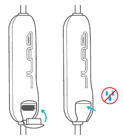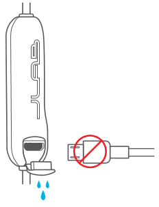 - Избегайте попадания влаги или жидкости в наконечник наушников или зарядный порт.