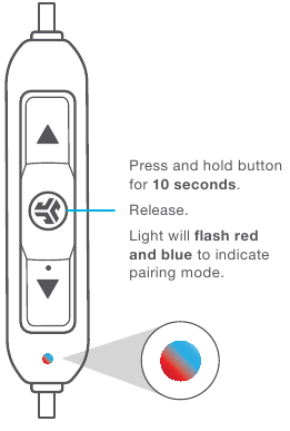 Примечание: JLab BT может запомнить до 8 устройств. Он будет пытаться автоматически подключиться к последнему использованному устройству.