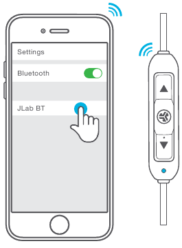 Выберите "JLab BT" в настройках вашего устройства для подключения.
