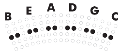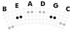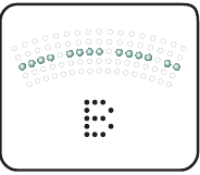 Режим отображения Stream (поток) - Поток движется вправо (нота слишком высокая) или влево (нота слишком низкая). Настройте свой инструмент, пока поток групп светодиодов не станет устойчивым.