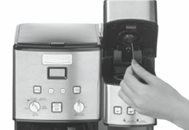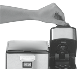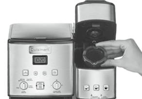- Используйте только фильтр Cuisinart ® Gold-Tone Commercial-Style Filter (Фильтр Cuisinart ® Золотистый в коммерческом стиле) или стандартный конусообразный бумажный фильтр с этим устройством. ДРУГИЕ ЗОЛОТЫЕ ПОСТОЯННЫЕ ФИЛЬТРЫ МОГУТ ПРИВЕСТИ К ПЕРЕЛИВУ КОФЕВАРКИ.