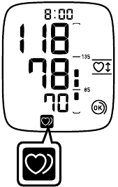 ![]() | Обнаружено нерегулярное сердцебиение. | Снимите манжету. Подождите 2-3 минуты и проведите еще одно измерение. Повторите шаги в разделе "Проведение измерения". Если эта ошибка продолжает появляться, обратитесь к врачу. |