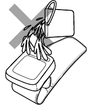 - Не надувайте манжету на запястье, когда она не обернута вокруг вашего запястья.