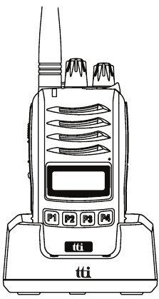 - Вставьте радиостанцию в зарядную подставку до щелчка. Светодиод зарядного устройства загорится красным цветом, и начнется зарядка. Если светодиод зарядного устройства мигает красным или зеленым цветом, или светодиод зарядного устройства не горит, повторно вставьте радиостанцию в зарядную подставку.