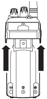 Убедитесь, что ваша радиостанция выключена. Совместите аккумуляторную батарею с направляющей и сдвиньте аккумуляторную батарею вверх до щелчка.