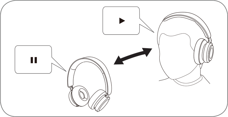 Снимите наушники и подождите 2 секунды, чтобы приостановить воспроизведение. Наденьте наушники и подождите 2 секунды, чтобы начать воспроизведение. Чтобы отключить функцию автоматического воспроизведения/паузы, нажмите и удерживайте среднюю кнопку на правом наушнике в течение 5 секунд, пока индикатор не начнет мигать синим цветом, а затем дважды нажмите среднюю кнопку. Индикатор загорится красным цветом. Чтобы снова включить, повторите те же действия, пока индикатор не загорится зеленым цветом.
