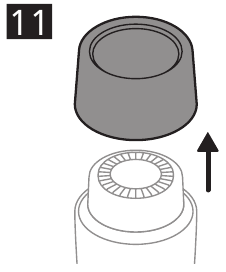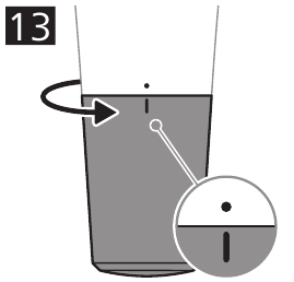 - Чтобы включить продукт, поверните нижнюю часть ручки до тех пор, пока индикация "включено" (l) не совместится с индикатором настройки (черная точка) на верхней части ручки (Рис. 13).