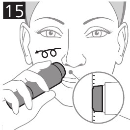 - Приложите головку для удаления волос плашмя к коже и делайте круговые движения (Рис. 15)