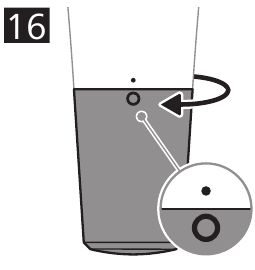 - Чтобы выключить продукт, поверните нижнюю часть ручки до тех пор, пока индикация "выключено" (O) не совместится с индикатором настройки (черная точка) на верхней части ручки (Рис. 16).
