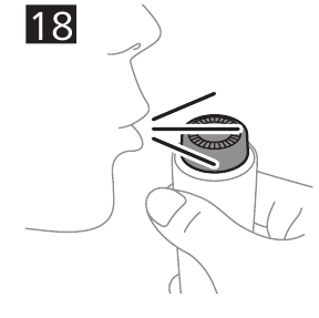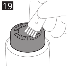 - Чтобы удалить волоски с внешней стороны головки для удаления волос, сначала сдуйте их (Рис. 18), а затем смахните оставшиеся волоски щеточкой для чистки (Рис. 19).