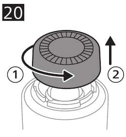 - Поверните головку для удаления волос против часовой стрелки и снимите ее с ручки (Рис. 20).