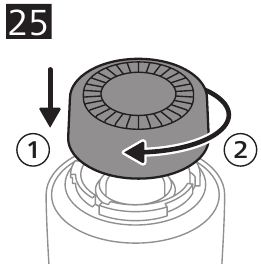- Установите головку для удаления волос обратно на ручку и поверните ее по часовой стрелке, чтобы закрепить (Рис. 25).