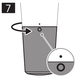 - Поверните крышку батарейного отсека до тех пор, пока индикация "заблокировано" (O) не совместится с индикатором настройки (маленькая точка) на верхней части ручки (Рис. 7).