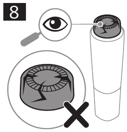 - Всегда проверяйте головку для удаления волос перед использованием, чтобы убедиться, что она чистая, в хорошем состоянии, не повреждена и не изношена (Рис. 8). Поврежденная головка для удаления волос может вызвать раздражение кожи и снижение производительности продукта.