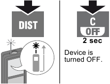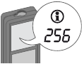 Результат отображается в основной строке, а измеренное расстояние выше. Нажатие клавиши измерения в течение 2 секунд в функции автоматически активирует минимальное или максимальное измерение.