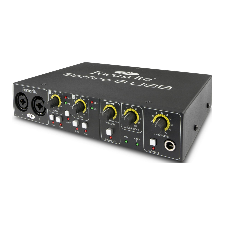 Focusrite Saffire 6 USB - Руководство пользователя многоканального аудиоинтерфейса
