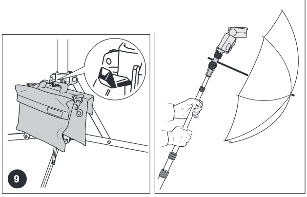 Разработан для обеспечения большей устойчивости: наполните мешки песком или другим материалом и повесьте их на подходящий крюк, предусмотренный на верхней части стойки (рис. 9).