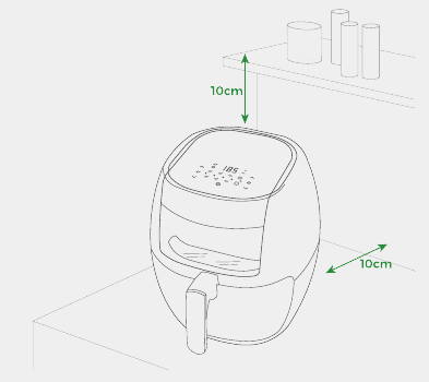 - НЕ ставьте прибор к стене или к другим приборам. Оставьте не менее 10 см свободного пространства сзади и по бокам и 10 см свободного пространства над прибором.