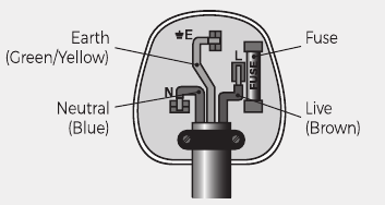 - Вилка должна быть оснащена предохранителем того же номинала, который уже установлен, и соответствовать стандарту BS 1362 и быть одобренным ASTA.