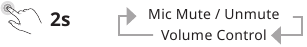 ФУНКЦИЯ РЕГУЛИРОВКИ ГРОМКОСТИ ВОСПРОИЗВЕДЕНИЯ: Кнопка Mic Mute / Unmute (Отключение/включение микрофона) позволяет переключаться между двумя функциями: Mic Mute / EQ (Отключение микрофона / Эквалайзер) и Volume Control (Регулировка громкости). Нажмите и удерживайте кнопку Mic Mute / Unmute (Отключение/включение микрофона), чтобы переключаться между этими двумя функциями. Нажмите кнопки, показанные ниже, чтобы отрегулировать громкость.