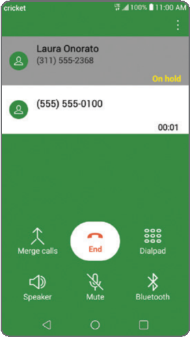 - Коснитесь "Answer" (Ответить) и проведите пальцем в любом направлении, чтобы принять вызов. Ваш текущий вызов будет автоматически поставлен на удержание, и оба вызова будут отображены на экране.