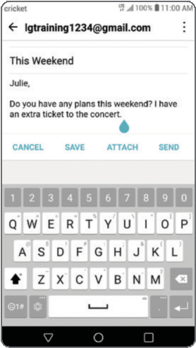 - Чтобы прикрепить файлы, коснитесь "ATTACH" (Прикрепить) и следуйте инструкциям на экране.