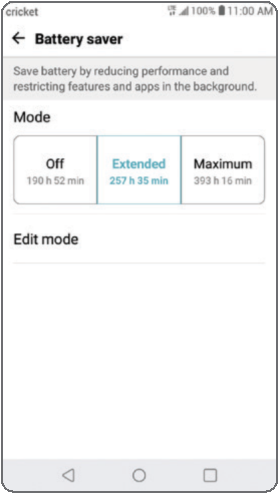- Коснитесь режима "Extended" (Расширенный) или режима "Maximum" (Максимальный), чтобы увеличить время работы аккумулятора.*