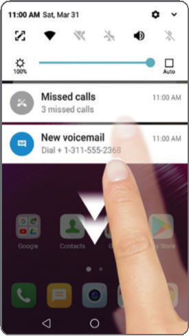 - Проведите пальцем вниз от верхней части любого домашнего экрана, чтобы получить доступ к панели уведомлений.