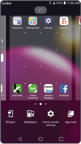 Персонализируйте свой домашний экран с помощью приложений, виджетов и обоев. Нажмите и удерживайте пустую часть домашнего экрана, чтобы получить доступ к параметрам настройки, затем выберите "Widgets" (Виджеты), "Wallpapers" (Обои), "Home screen settings" (Настройки главного экрана) или "App Trash" (Корзина приложений). Просматривайте параметры, проводя пальцем для прокрутки, и коснитесь или перетащите элемент, чтобы добавить его на домашний экран.