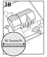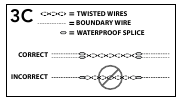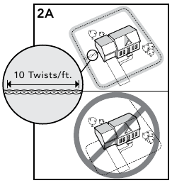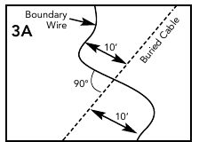 - Скручивание граничного провода отменяет сигнал и позволяет вашему питомцу пересекать эту область без коррекции. Пластиковые или металлические трубы не отменят сигнал. Скрутите граничный провод 10-12 раз на фут, чтобы отменить сигнал (2A).
