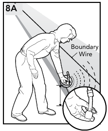 - Удерживайте регулятор ширины границы в положении 10. Установите переключатель Boundary Control в положение A. Поднесите петлю к ошейнику приемника, как в шаге 7, и убедитесь, что ошейник приемника активируется.