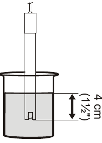 Ak chcete vykonať meranie mV vzorky, ponorte hrot ORP elektródy (aspoň 4 cm / 1½") do testovaného roztoku. Počkajte niekoľko minút, kým sa údaj stabilizuje.
