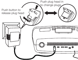 Zapojte kábel AC adaptéra do AC Adaptor Jack (zásuvka AC adaptéra) a druhý koniec do štandardnej zásuvky v stene 100-240 VAC. Adaptér musí byť zapojený, aby fungoval. iP90 nefunguje na batérie.