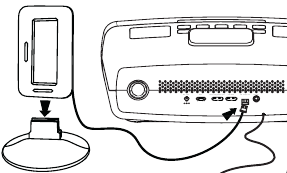- Keď je iPhone/iPod vložený do jednotky a jednotka je pripojená k napájaniu striedavým prúdom, nabíja sa (až do úplného nabitia).