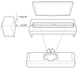 - Odstráňte všetky predmety medzi subwooferom a soundbarom.