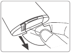 - Zatlačte na západku na boku priehradky na batérie smerom k priehradke.