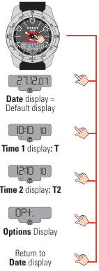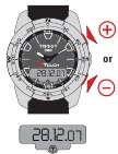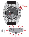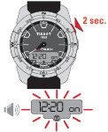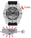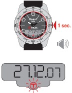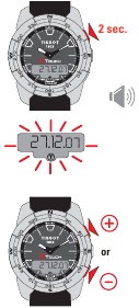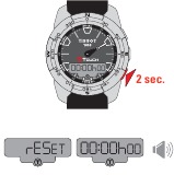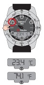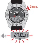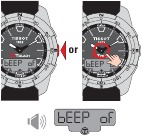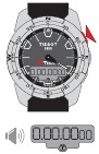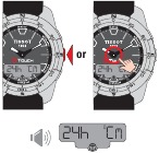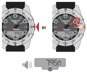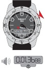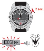 T-TOUCH je vodotesný do 10 atm / 100 m / 330 ft pri 25°C / 77°F, ale nie je to prístroj vhodný na športové potápanie. Tlačidlá nesmiete používať, keď sú hodinky pod vodou. Žiadna z funkcií sa nedá aktivovať, ak je sklo v kontakte s kvapalinou.