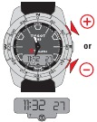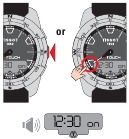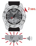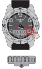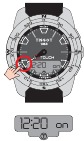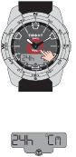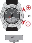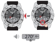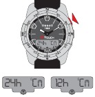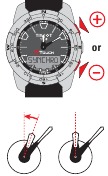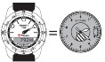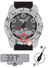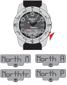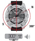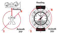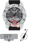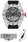 Minútová ručička ukazuje na skutočný sever, pričom zohľadňuje nastavenie magnetickej deklinácie. V režime kompasu digitálna obrazovka zobrazuje uhol medzi 12. hodinou a minútovou ručičkou.