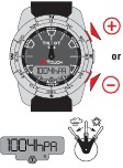 Ak hodinky nie sú nastavené ("No Set"), použije sa štandardný model atmosféry: nastavená teplota na úrovni mora = 15 °C, priemerný tlak na úrovni mora: 1013,25 hPa