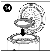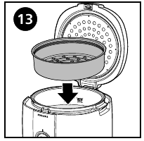 - Vložte parný košík do vnútornej nádoby (obr. 13).
