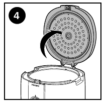 - Používajte kuchynskú rukavicu alebo handričku, pretože tanier a parný košík budú veľmi horúce.