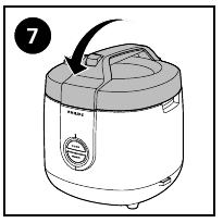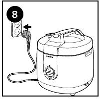 - Zatvorte veko variča ryže (obr. 7), vložte zástrčku do elektrickej zásuvky (obr. 8).