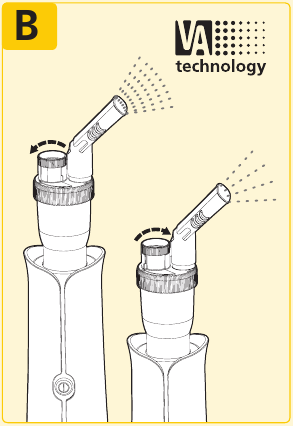 Patentovaný nastaviteľný ventil dokáže ľahko podávať lieky s rôznou úrovňou viskozity podľa stavu a potrieb každého používateľa. Naša technológia VA umožňuje používateľom nastaviť rôzne úrovne rýchlosti nebulizácie v rozsahu ≥ 0,08 – 0,2 ml/min pri konzistentnej veľkosti častíc.