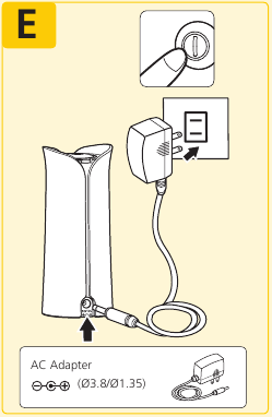 - Zapojte AC adaptér do zásuvky. (AC adaptéry s požadovaným napätím a prúdom sú uvedené v blízkosti konektora AC adaptéra.)