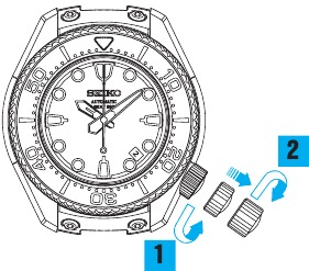 - Pred akoukoľvek operáciou s korunkou ju odskrutkujte. Keď je operácia ukončená, zaskrutkujte korunku, aby ste ju uzamkli.