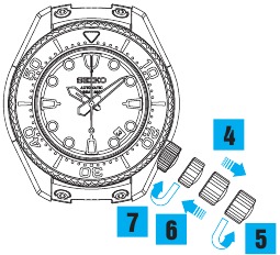 - Oprava potápačských hodiniek si vyžaduje špeciálne odborné znalosti a vybavenie. Ak zistíte, že vaše potápačské hodinky nefungujú správne, nikdy sa ich nepokúšajte opraviť, ale ich okamžite pošlite do najbližšieho servisného strediska SEIKO.
