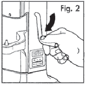 - Umiestnite rukoväť výťahu misy do spodnej polohy (obr. 2).