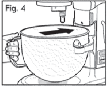 POZNÁMKA : Pre obe misky zasuňte aretačnú guľôčku na zadnej strane misy do aretácie na mixéri. (Obr. 4).