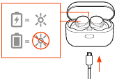 | LED diódy na slúchadlách/puzdre počas nabíjania | |